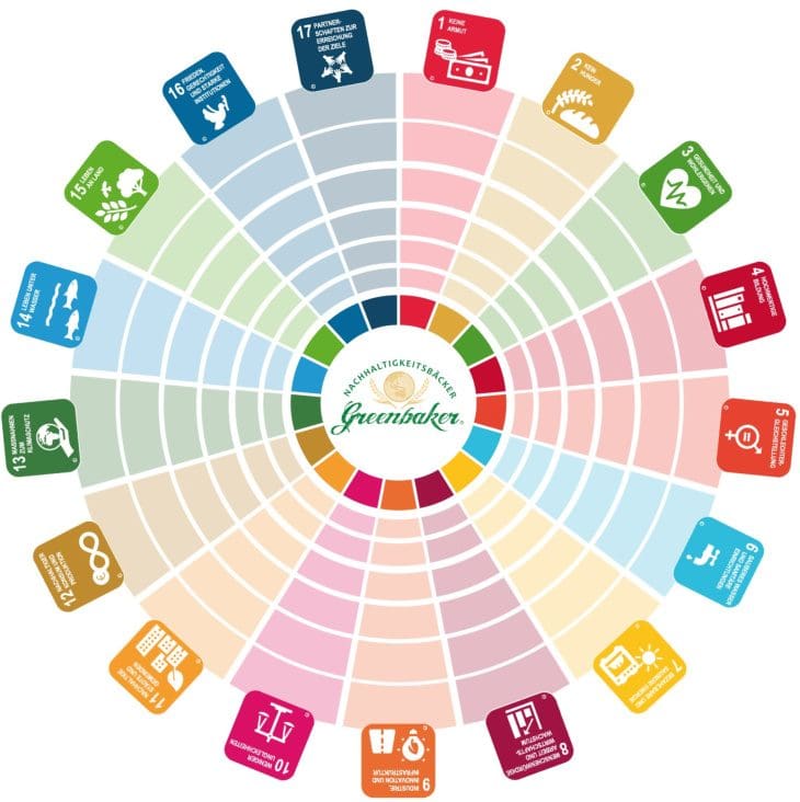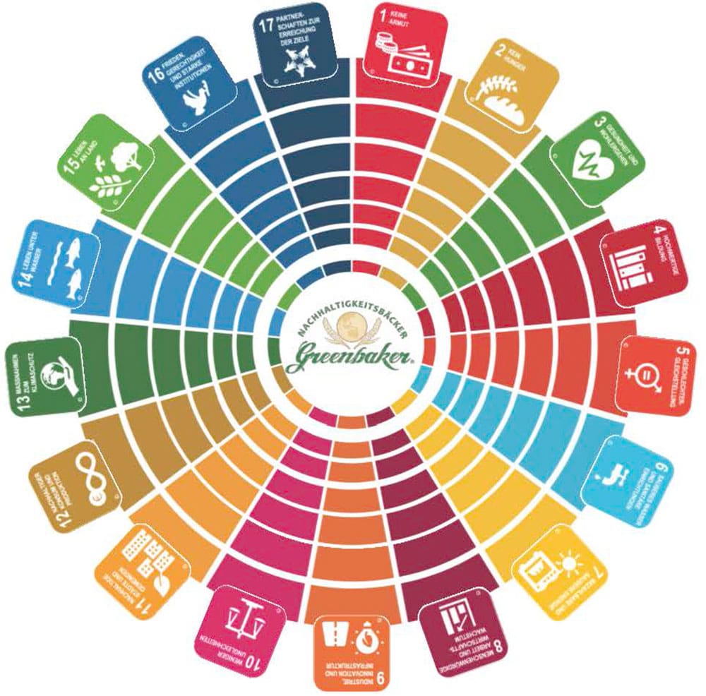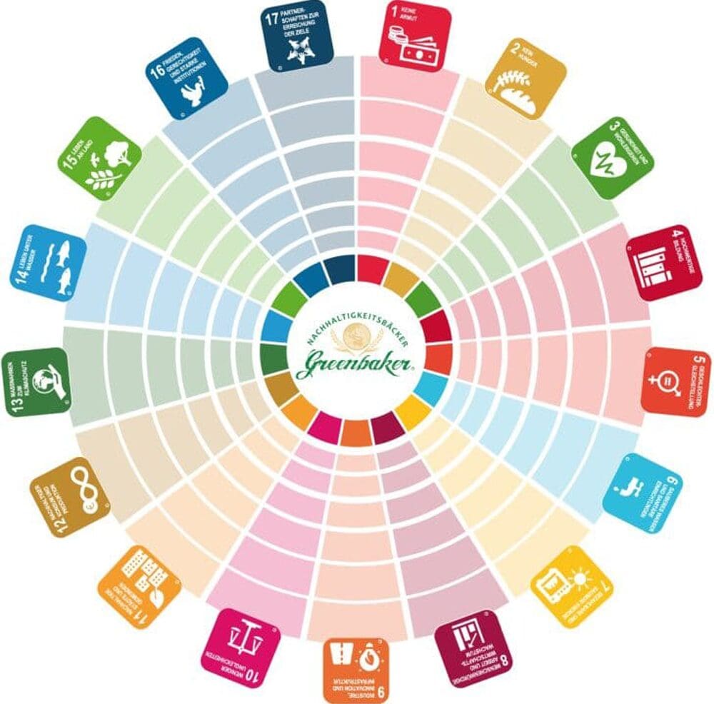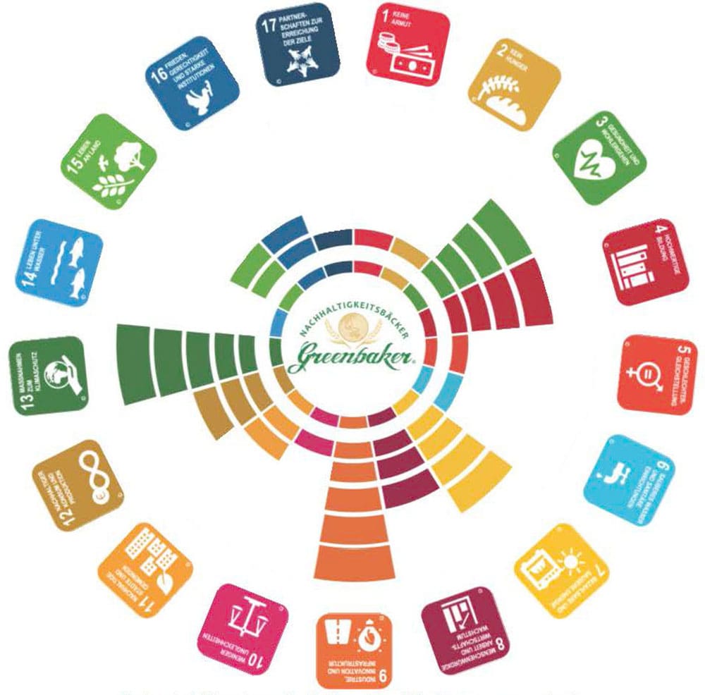 Der Fortschritt und die Erreichung der individuellen Unternehmens-Zielsetzung ist zukünftig auf der GREENBAKER-SDG Score-Map aufgezeigt:
